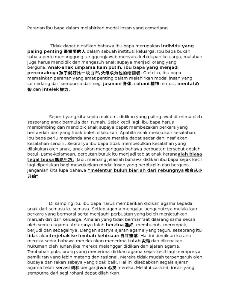 Peranan Ibu Bapa Dalam Melahirkan Modal Insan Yang Cemerlang Pdf